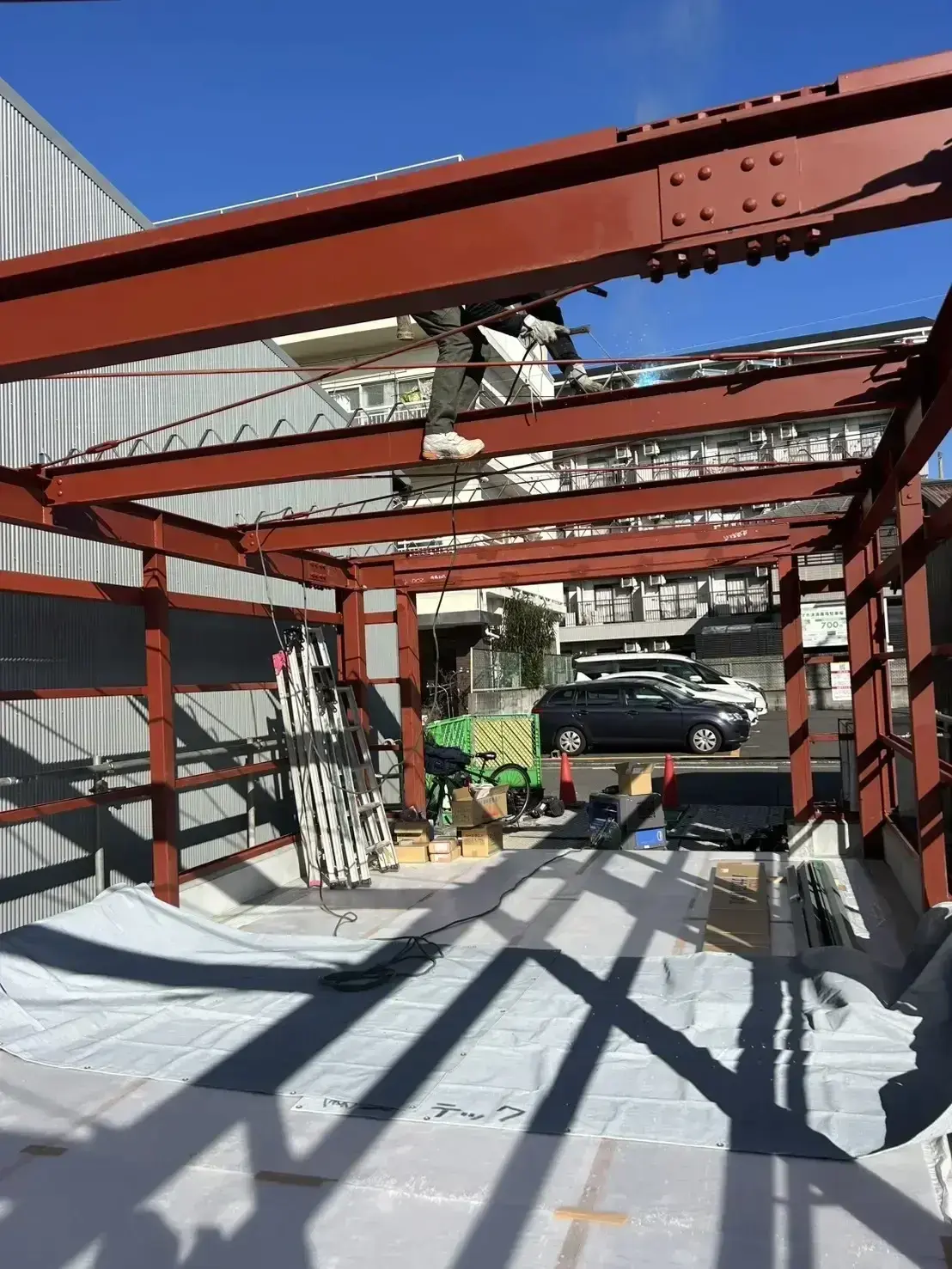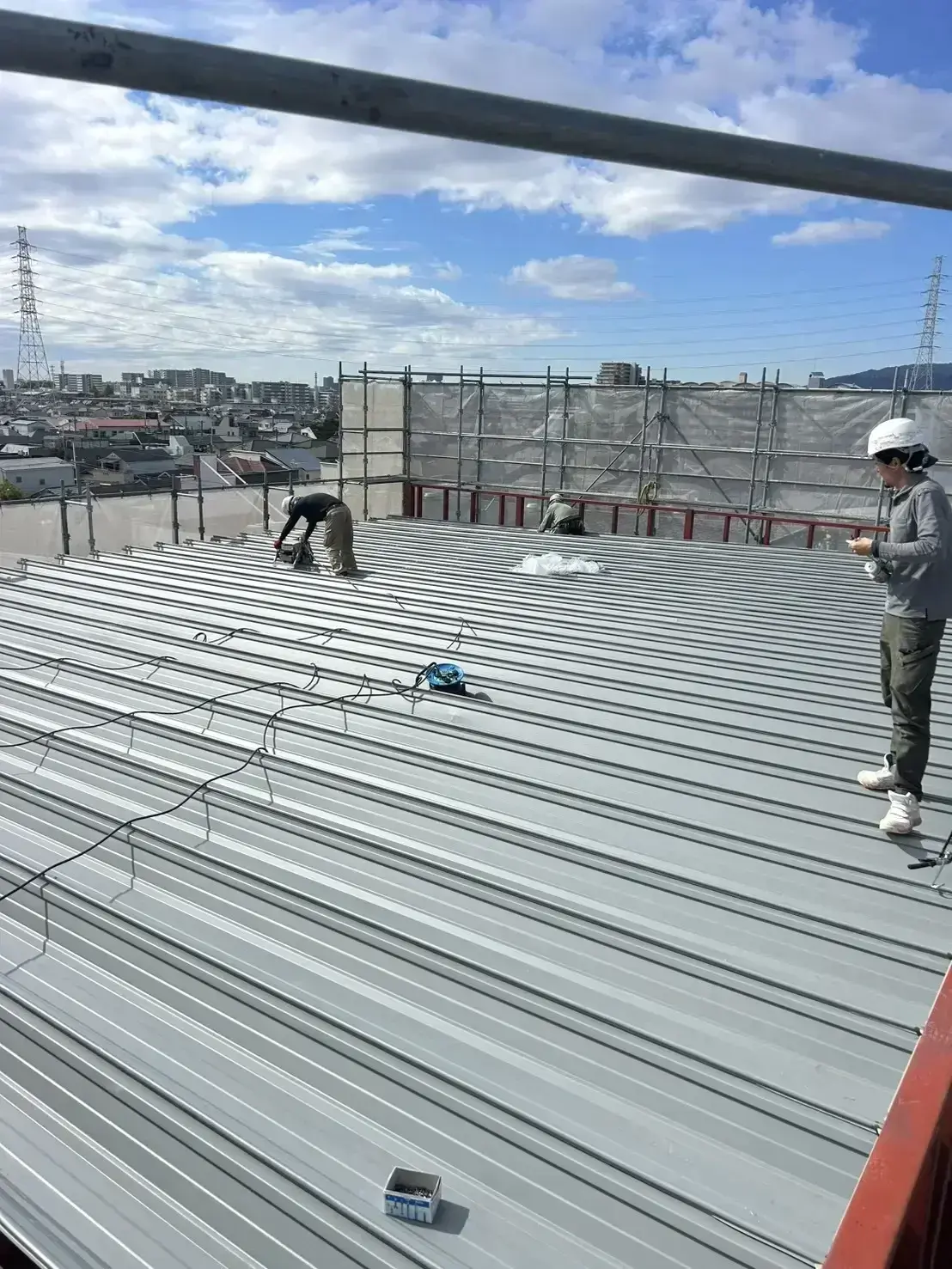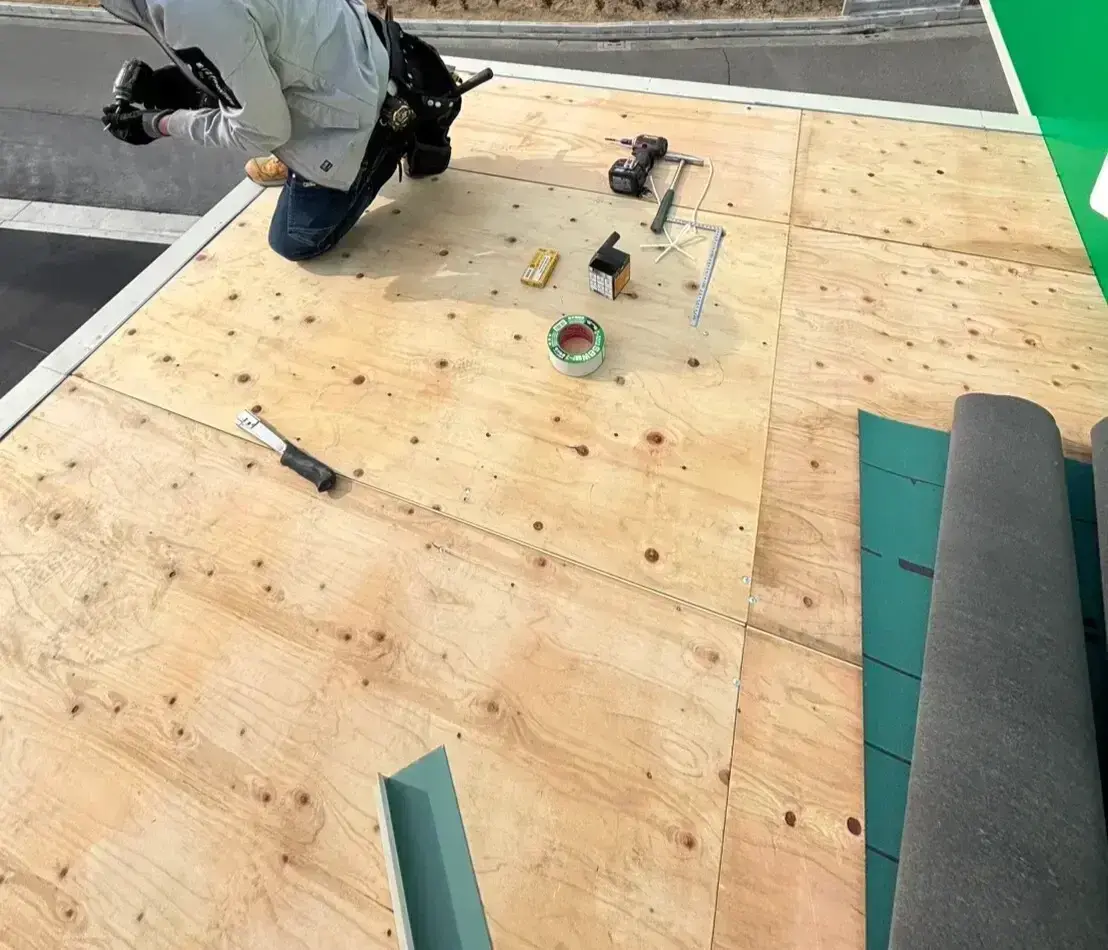 建物の顔となる屋根や外壁に金属板を加工・取り付け。断熱・防水・美観のすべてを担う重要な工程です。